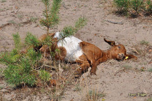 Körperpflege wird mit dem Maul / Zähnen, den Klauen, sowie mit den Hornspitzen betrieben. Mit Hornspitzen wird z.B. auch der Klauenzwischenraum gereinigt. Mit den Hinterbeinen wird die vordere Körperregion gekratzt. Scheuermöglichkeiten, wie Gehölze oder auch durch den Tierhalter angebrachte Bürsten werden sehr gerne benutzt.
